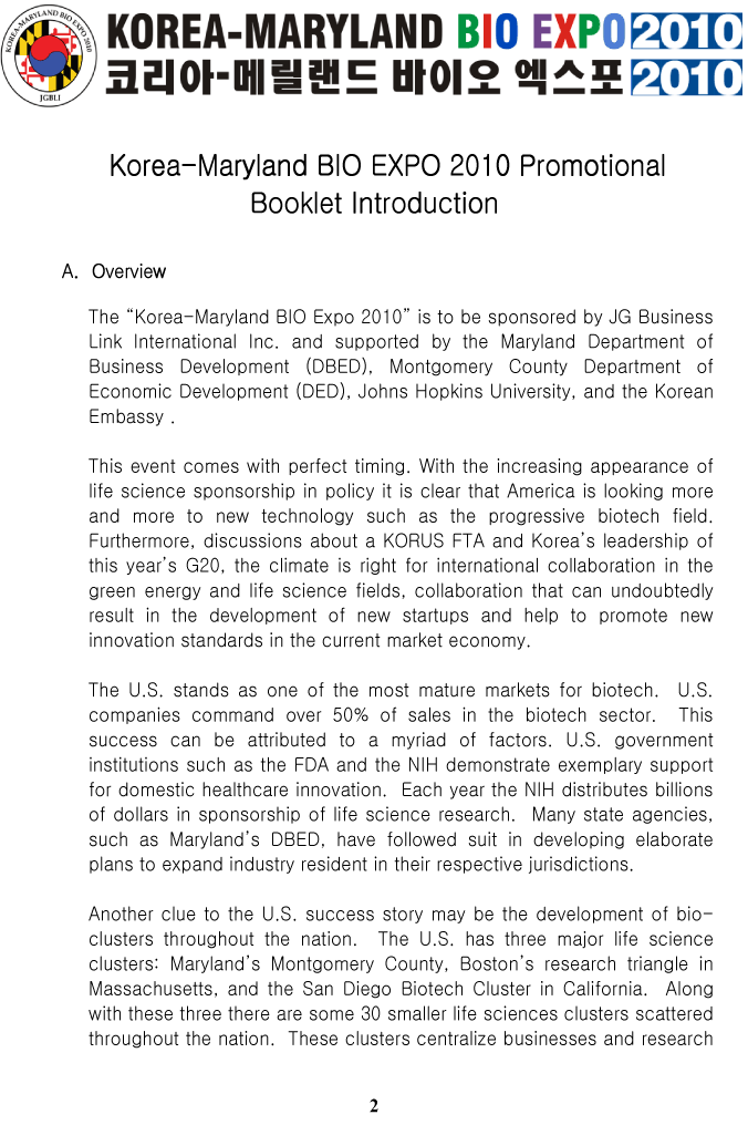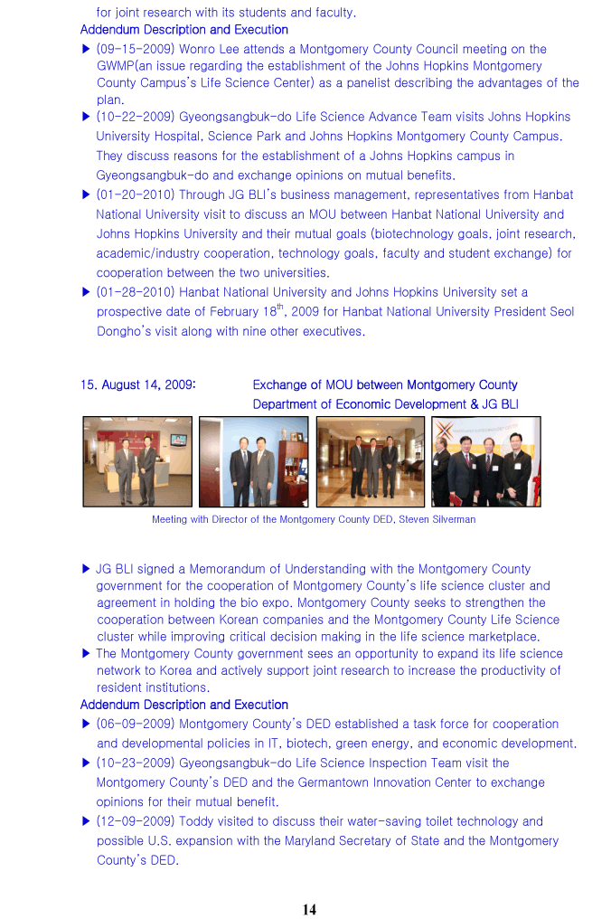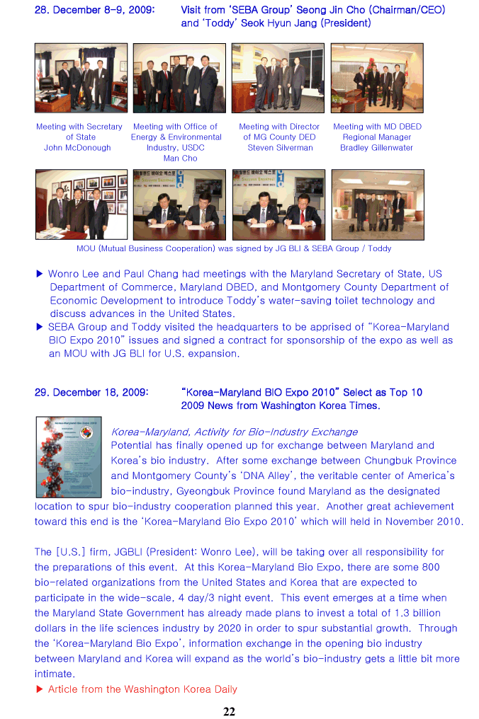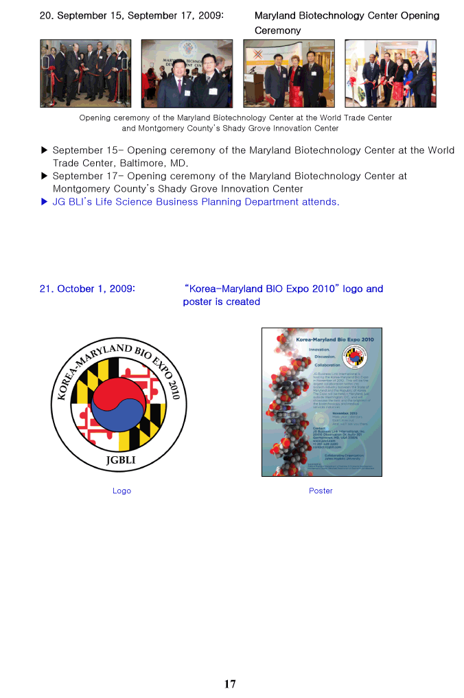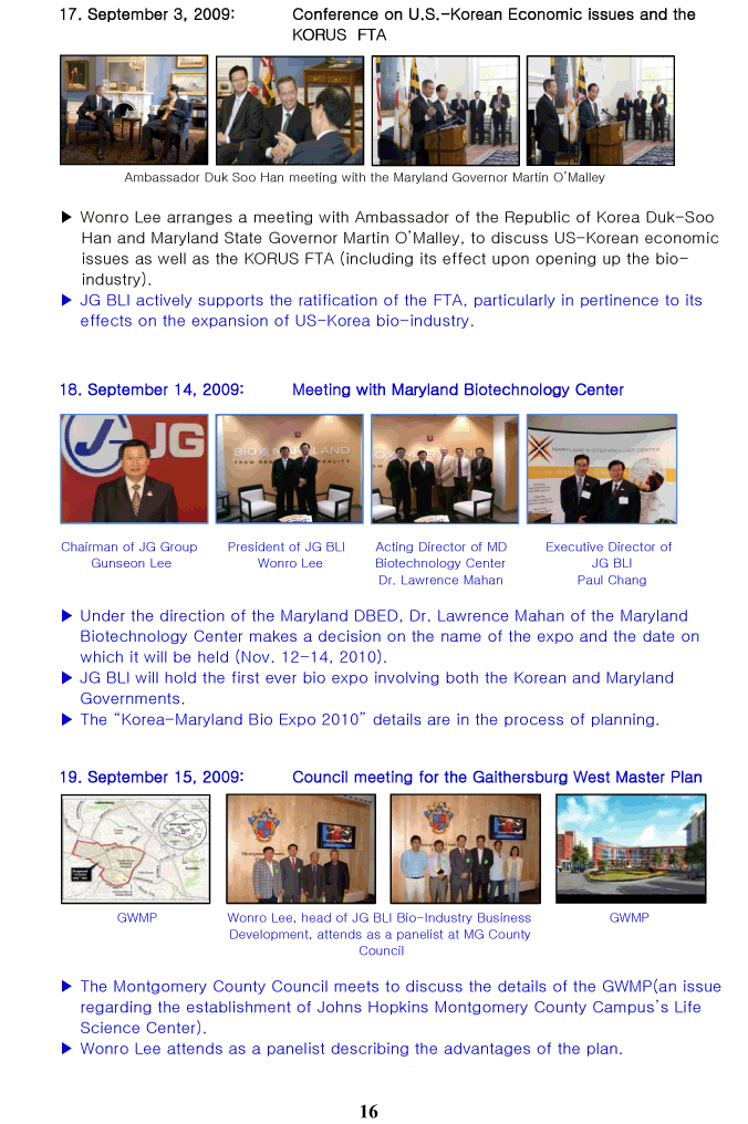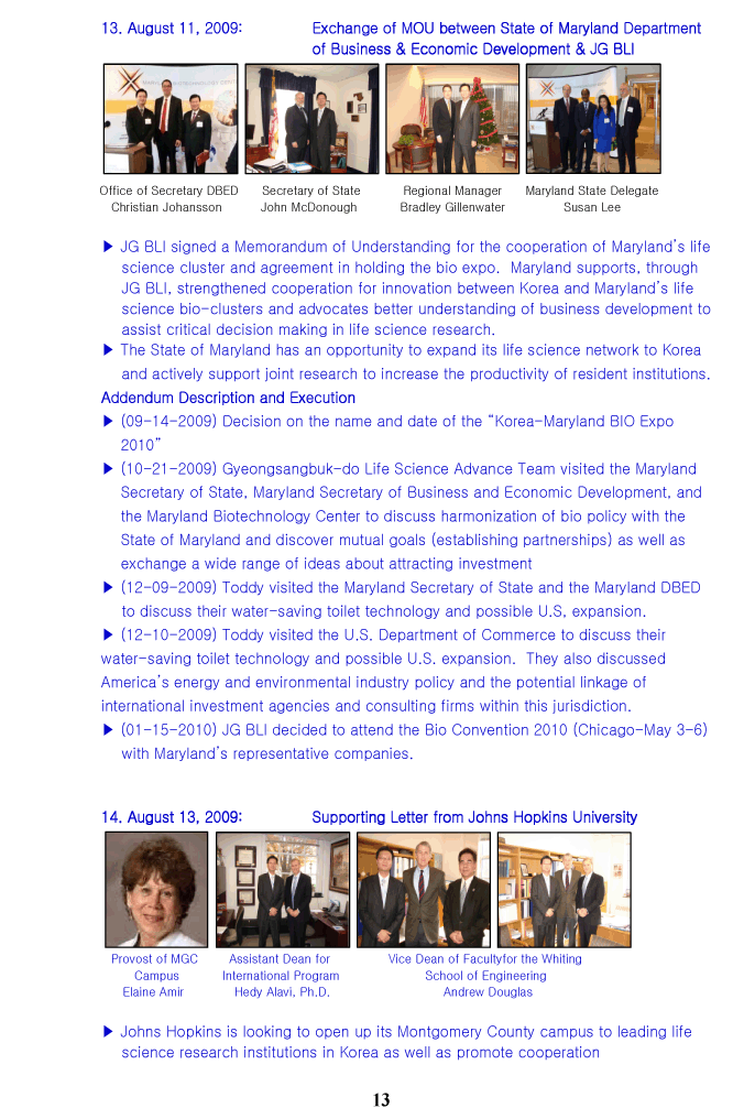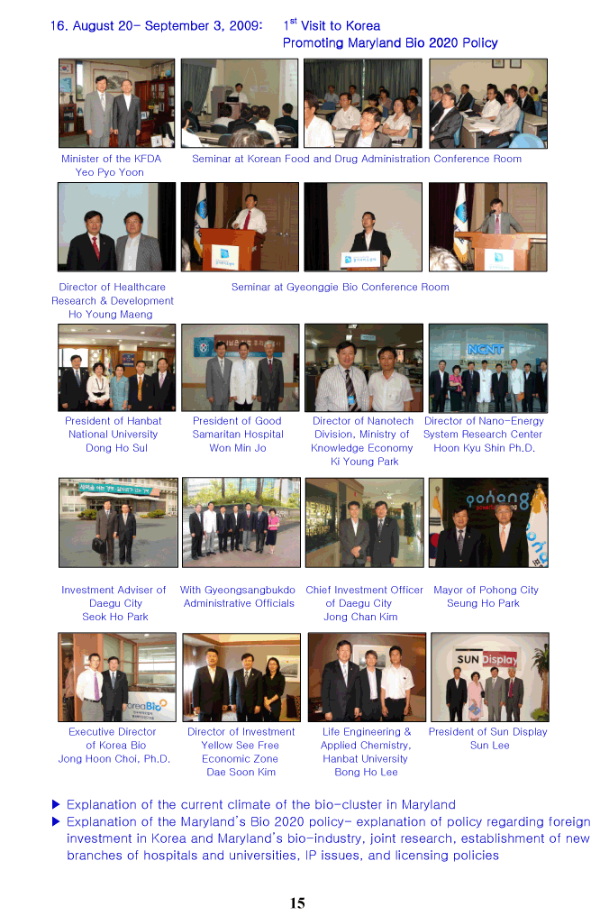 C. History 16.1st Visit to Korea promoting Maryland Bio 2020 Policy