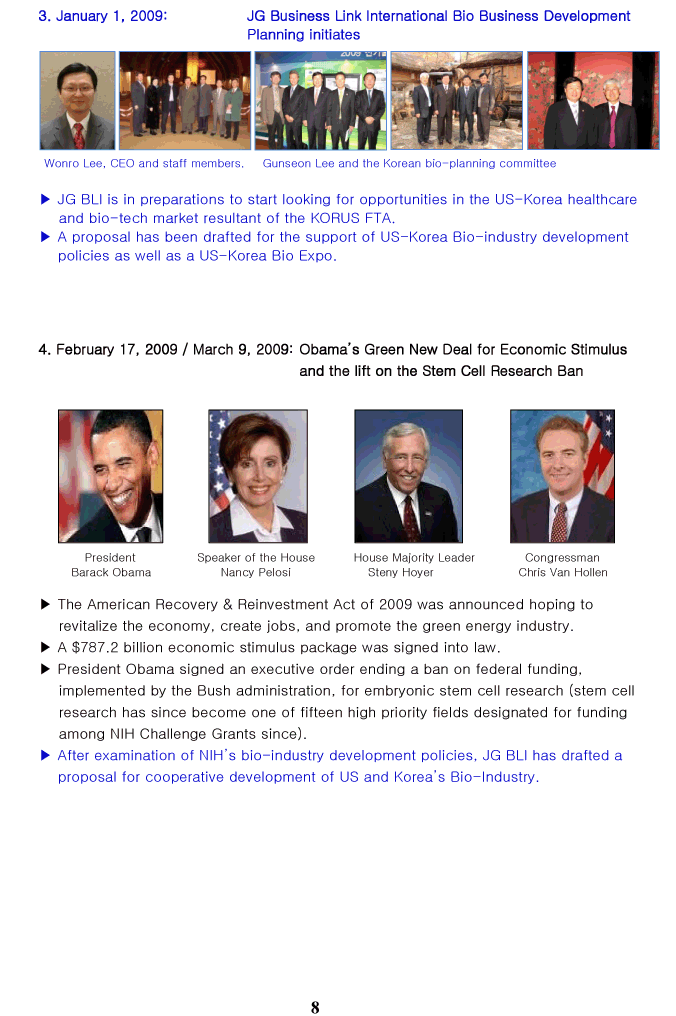 C. History 3.JG BLI Bio Business development Planning Initiates 4.Obama's Green Deal