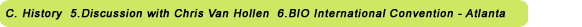 C. History 5.Discussion with Chris Van Hollen 6.BIO International Convention - Atlanta