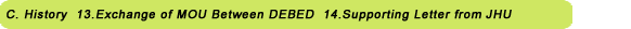 C. History 13.Exchange of MOU Between DEBED 14.Supporting Letter from JHU