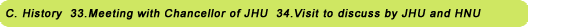 C. History 33.Meeting with Chancellor of JHU 34.Visit to discuss by JHU and HNU