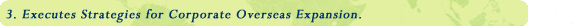 For a successful overseas expansion, there must be international competitive strength supported by the foundation in the domestic market. Therefore, a CEO must have accurate understanding about the globalization strategy and the ability to execute international trade and management.