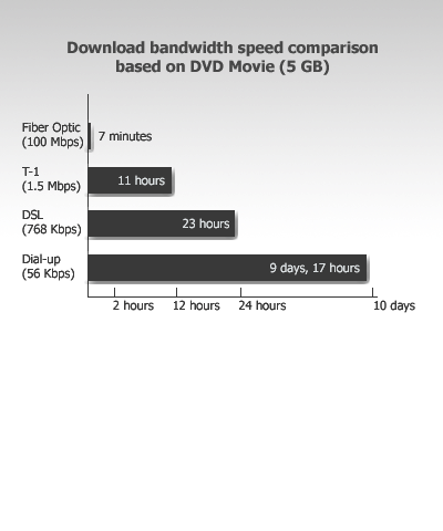 Ultimately, cable modem and ADSL are little more than broadband "bandages," temporary solutions that will ultimately be replaced by fiber optic, which has virtually unlimited bandwidth downstream and upstream. Fiber optic is the smart, long-term solution for broadband to your home.
